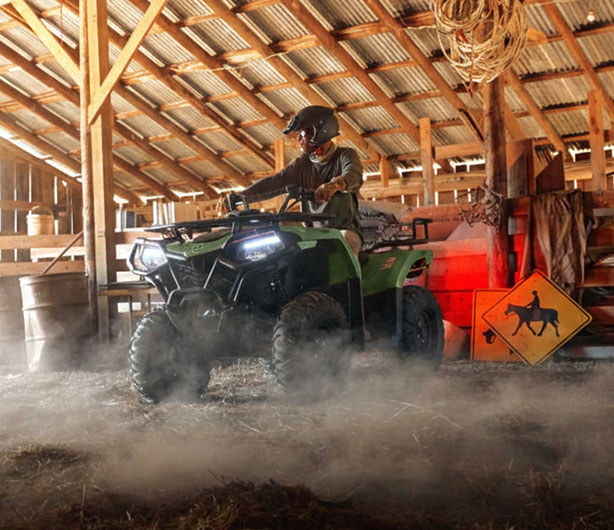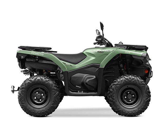 De CFORCE 450 zet zijn stevigheid in de verf met een robuuste look, waarbij de bumpers mooi aansluiten op de lijnen van zijn carrosserie.