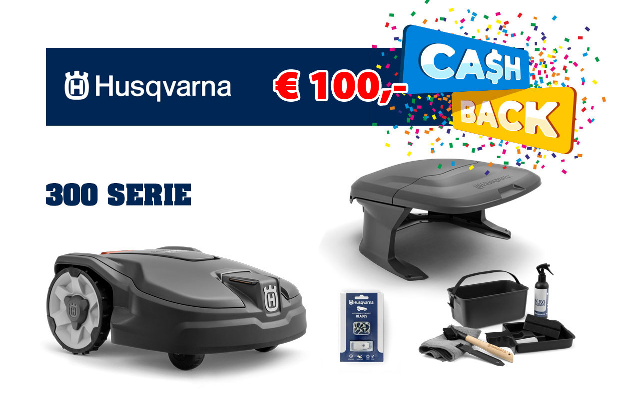 Bij aanschaf van deze Husqvarna Automower® 305 heeft u recht op 100 euro Cashback.