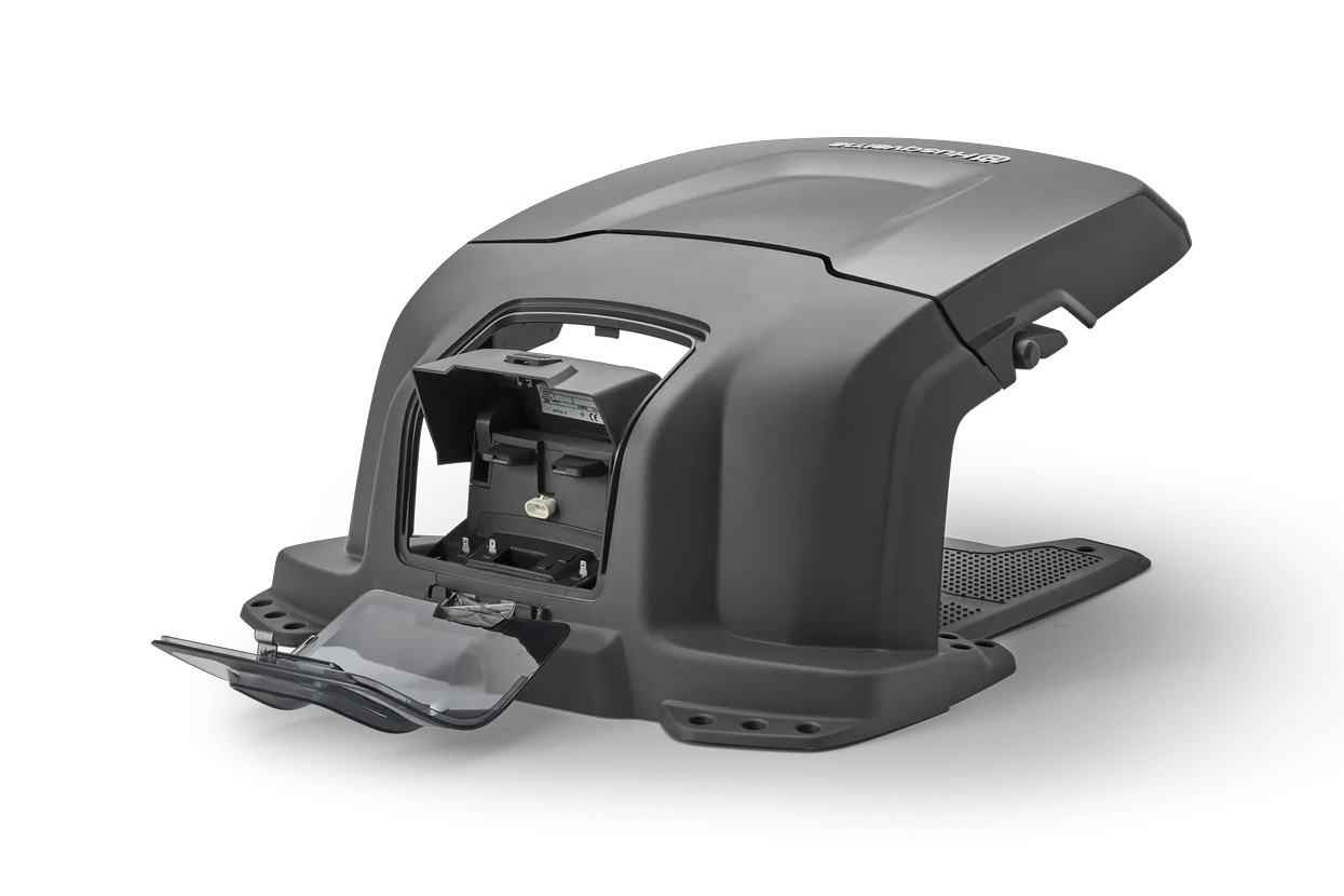 De Husqvarna Automower® is ontworpen om te werken in alle omstandigheden. Om de mooie uitstraling te behouden, beschermt het bijpassende Husqvarna Automower® beschermhuis de maaier tegen langdurige blootstelling aan regen en zon. Dankzij de opklapbare klep, zijn het toetsenbord en display eenvoudig te bereiken, terwijl de maaier wordt opgeladen. Alle kabelverbindingen zijn bereikbaar via de kabelpoort aan de achterzijde.
